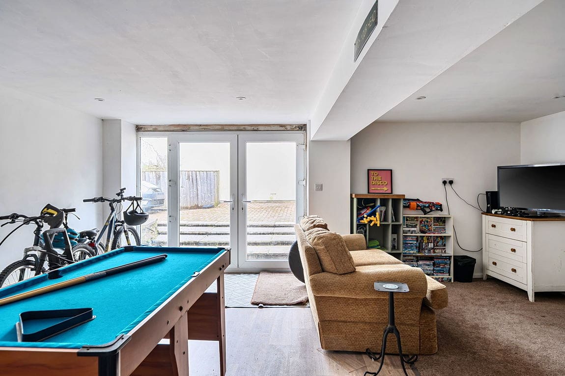 The property is approached from Carboth Lane via double wooden gates which lead to the rear of the property where there is a bricked paved area providing parking for several vehicles. Steps down to the GAMES ROOM 5.31m x 5.41m (17.5 x 17.9) with power and light connected.