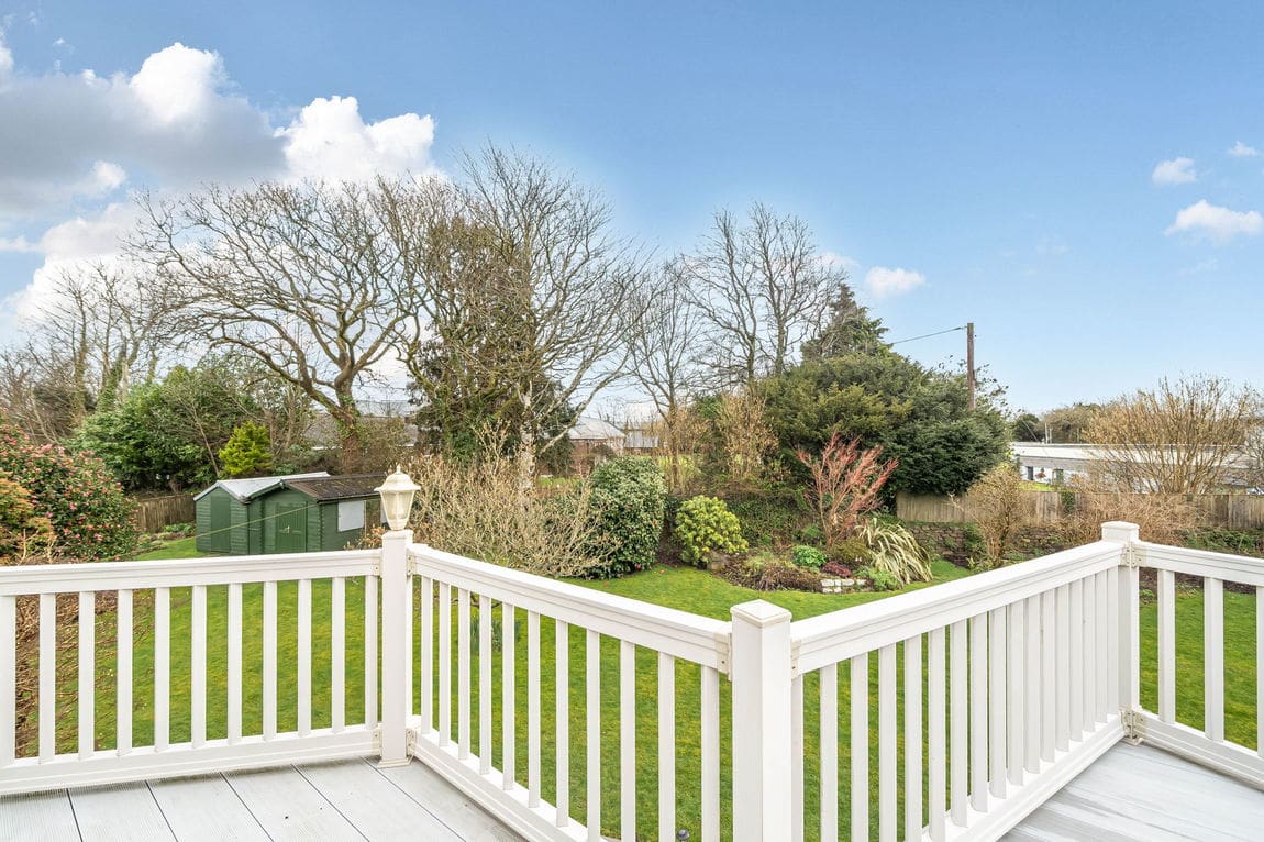 Upstairs the landing provides access to the loft and an airing cupboard. The main bedroom has double doors opening onto a private balcony, under eaves cupboard and en suite shower room. Bedroom 2 has a window to the side, under eaves cupboards and corner sink and bedroom 3 has window to the front. The family bathroom comprises a corner bath, wash hand basin and low flush WC.