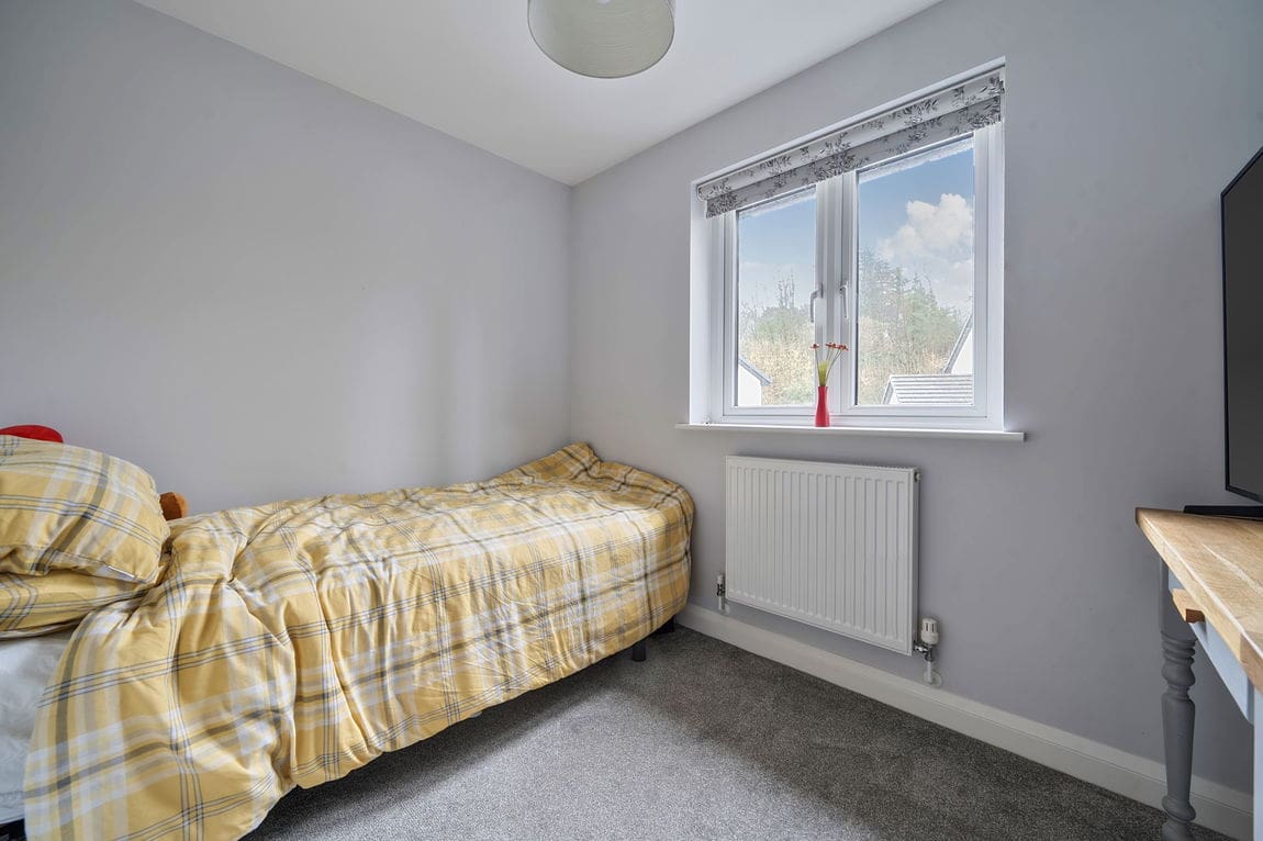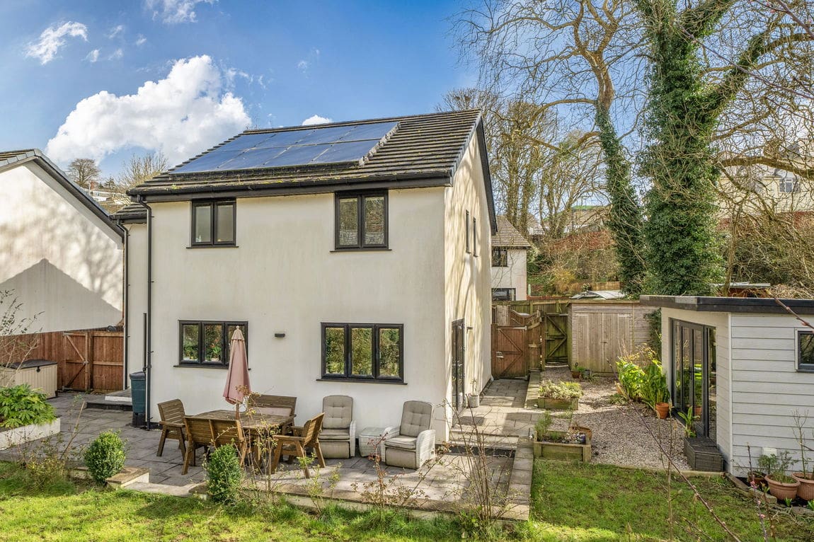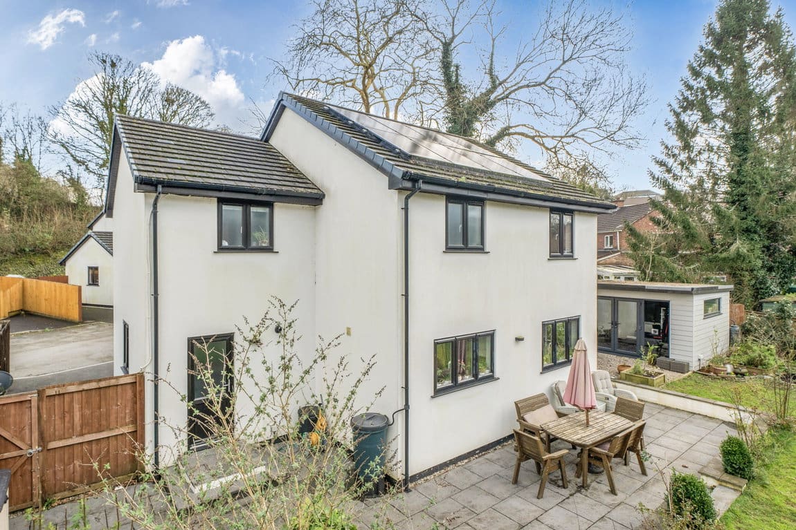 A detached, timber-framed property presented in good order throughout with solar panels with battery storage, parking and a purpose built home office/garden room.