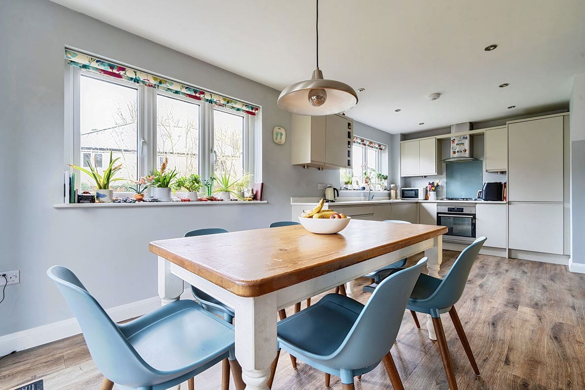The lounge has a window to front aspect and glazed doors opening into the contemporary kitchen/dining room which enjoys a range of base and wall units with integral appliances including dishwasher and fridge/freezer and a glazed door opening onto the rear terrace, ideal for al fresco dining.